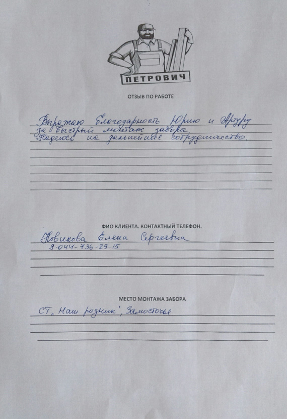 5 лет - минимальная гарантия на сетку рабица, которым мы комплектуем заборы.